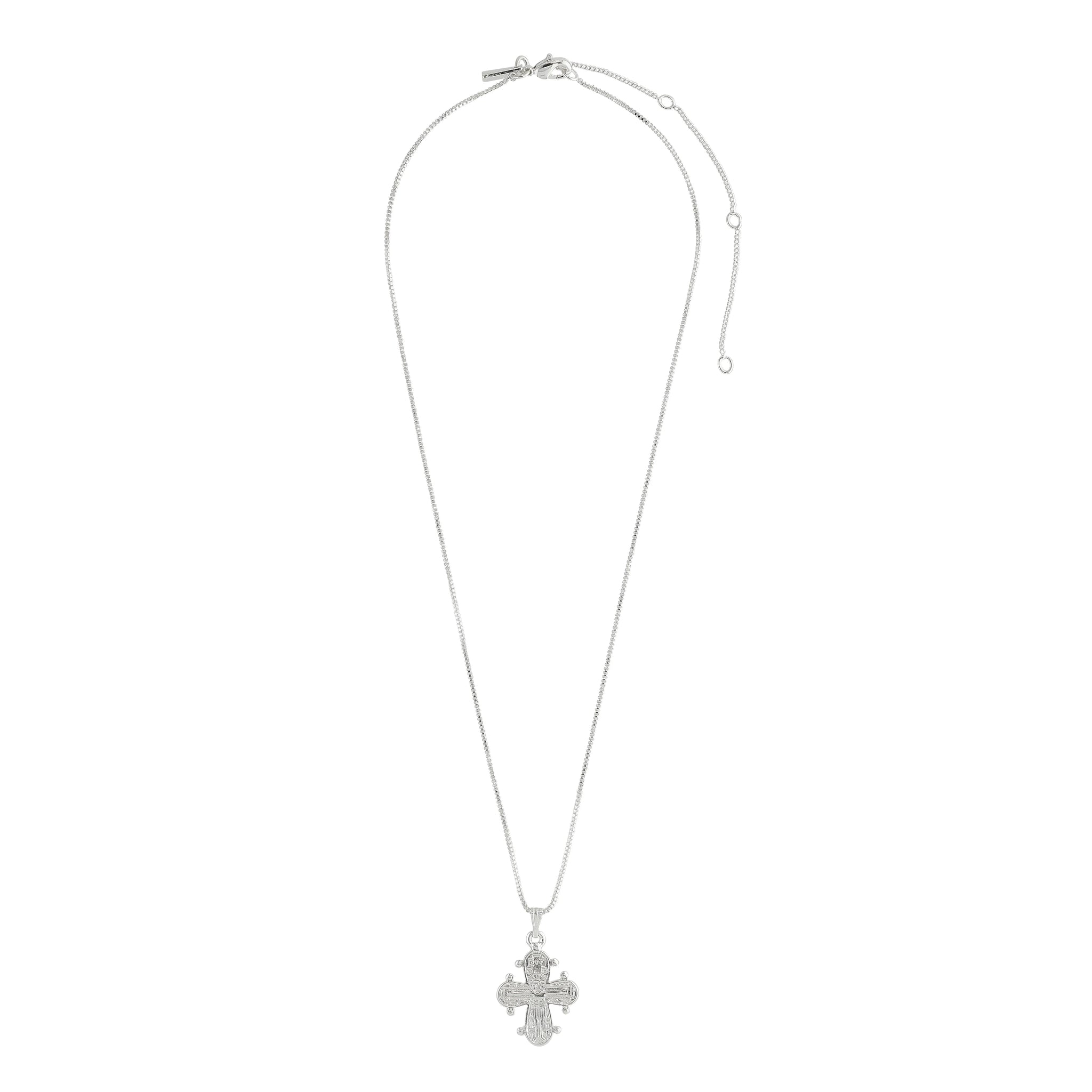 Pilgrim’s beautiful and classic Dagmar Cross is silver-plated and hangs from a fine silver-plated chain which is 38 cm long and has a 9 cm extender chain.