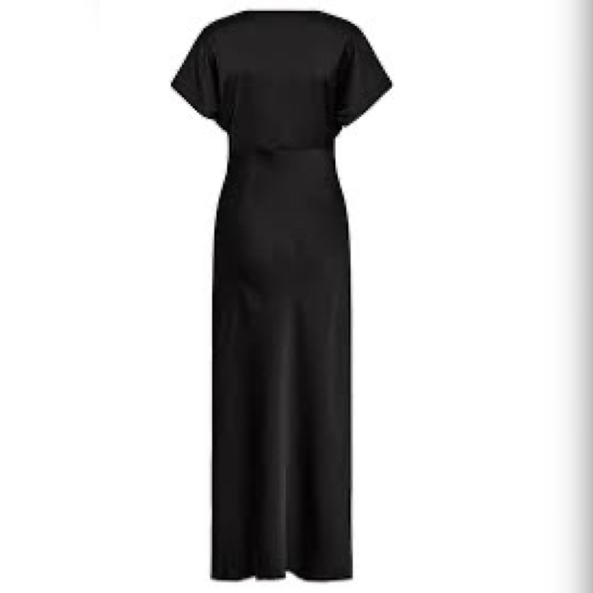 This elegant dress from Co Couture has an ankle length silhouette with ruffle details.