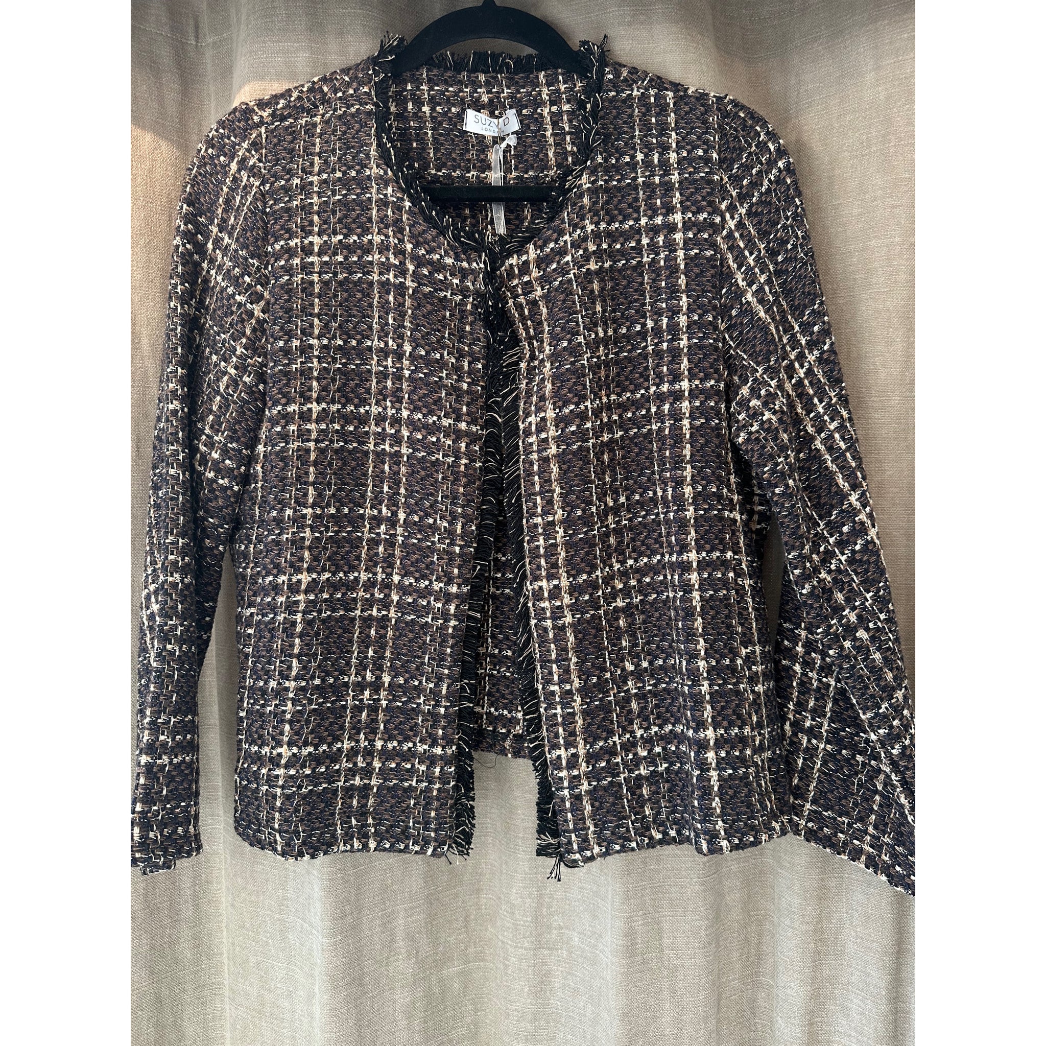 Suzy D frayed trim textured short jacket.