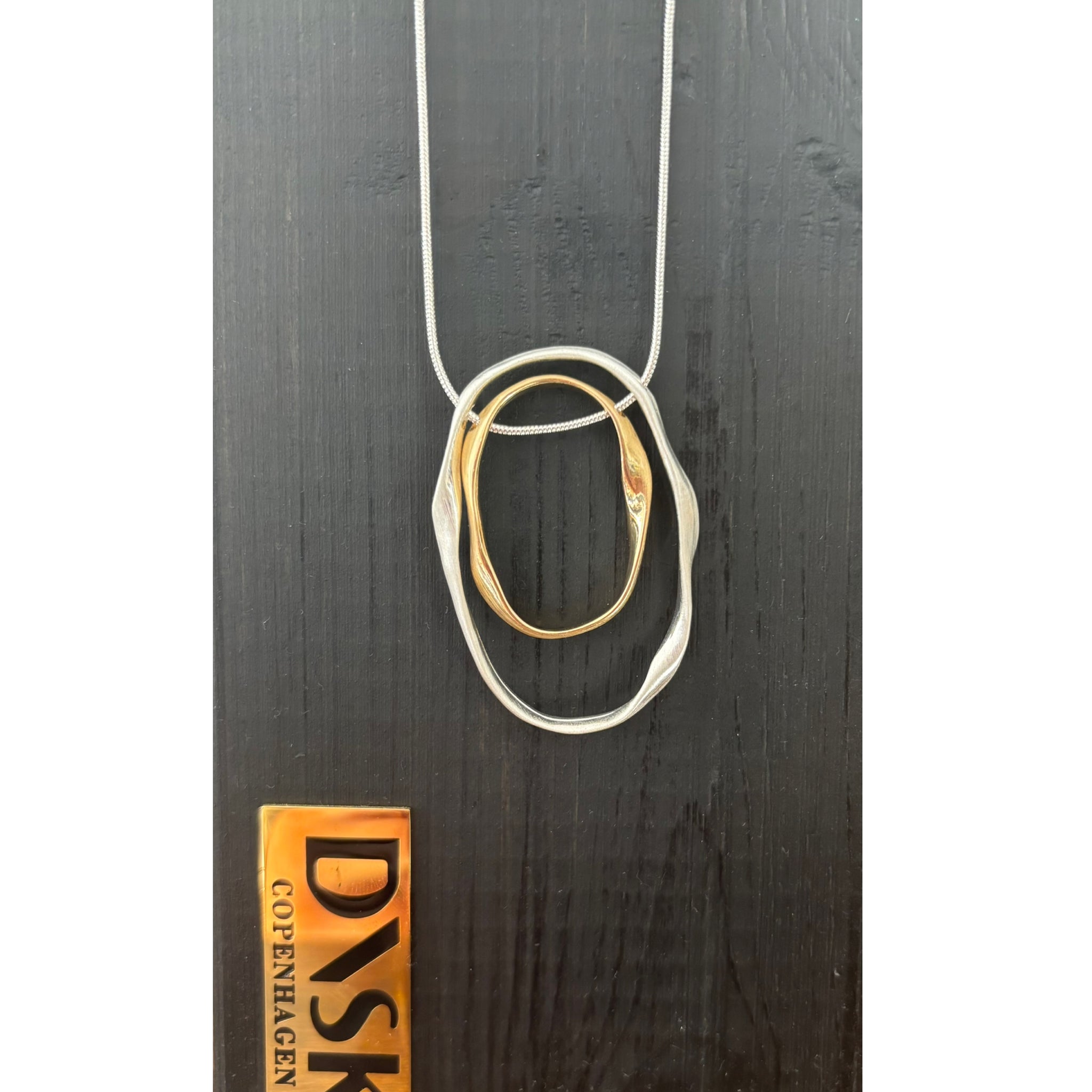 Dansk Tula Two Tone Necklace This striking necklace combines contrasting metals in a refined oval design. The two-tone composition—blending warm and cool metallic tones—creates visual depth and versatility, making it suitable for both everyday wear and special occasions. The oval silhouette offers a contemporary take on classic jewellery design, while the quality craftsmanship ensures durability. An ideal piece for those seeking understated elegance with modern sensibility.