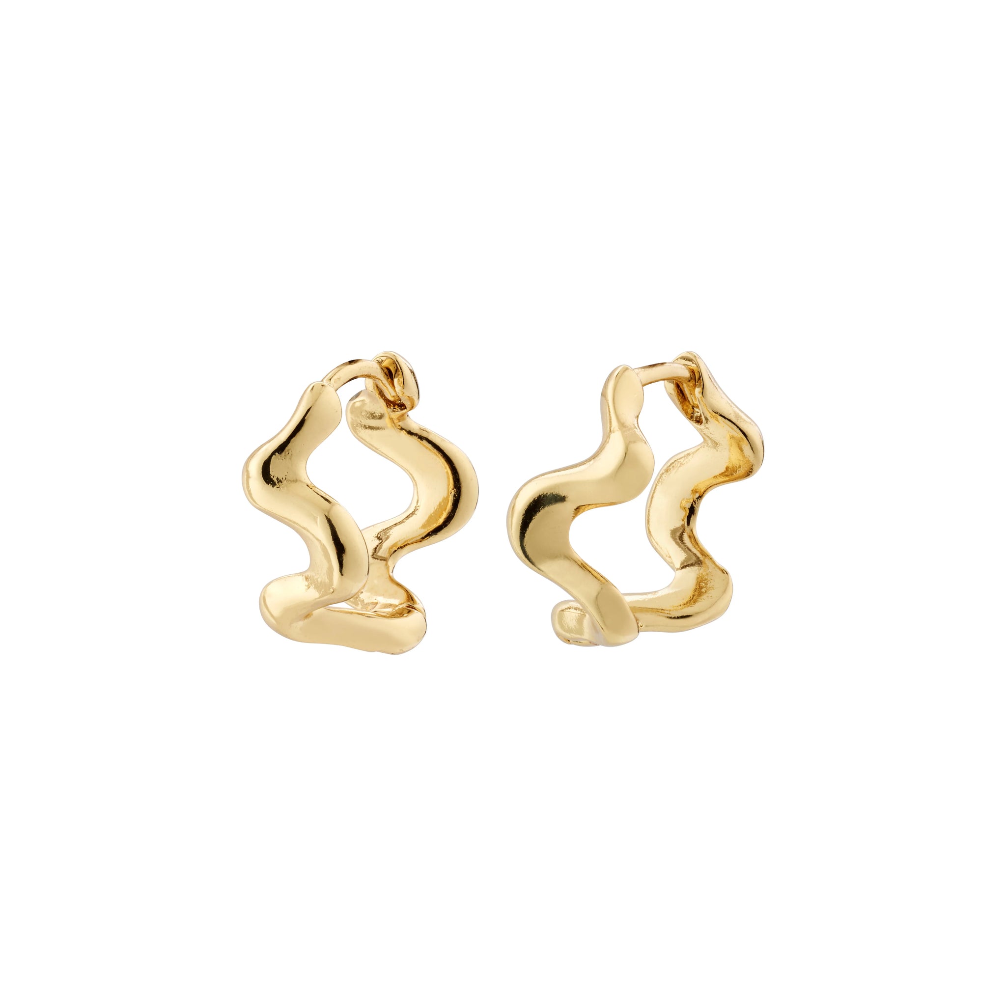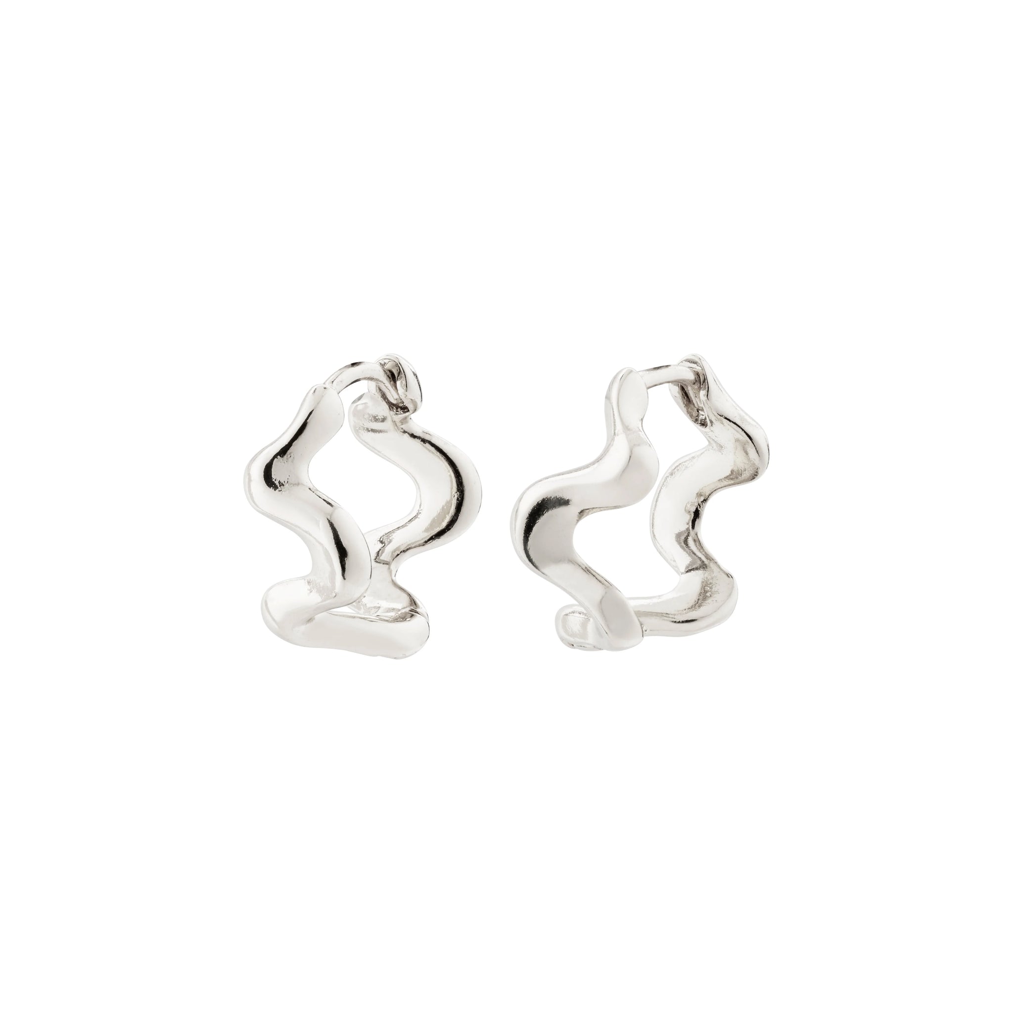 Classy, curvy hoops. Gold or silver-plated PENELOPE earrings from Pilgrim give you an instant lift with their wavy vibes and cool graphic silhouettes. A set of classic hoops with a twist and your golden go-to when you want to add a touch of upscale chic to your everyday styles. The earrings have an easy-to-use click clasp that makes them easy to wear, and they are made from 99% recycled material with care for our planet in mind.