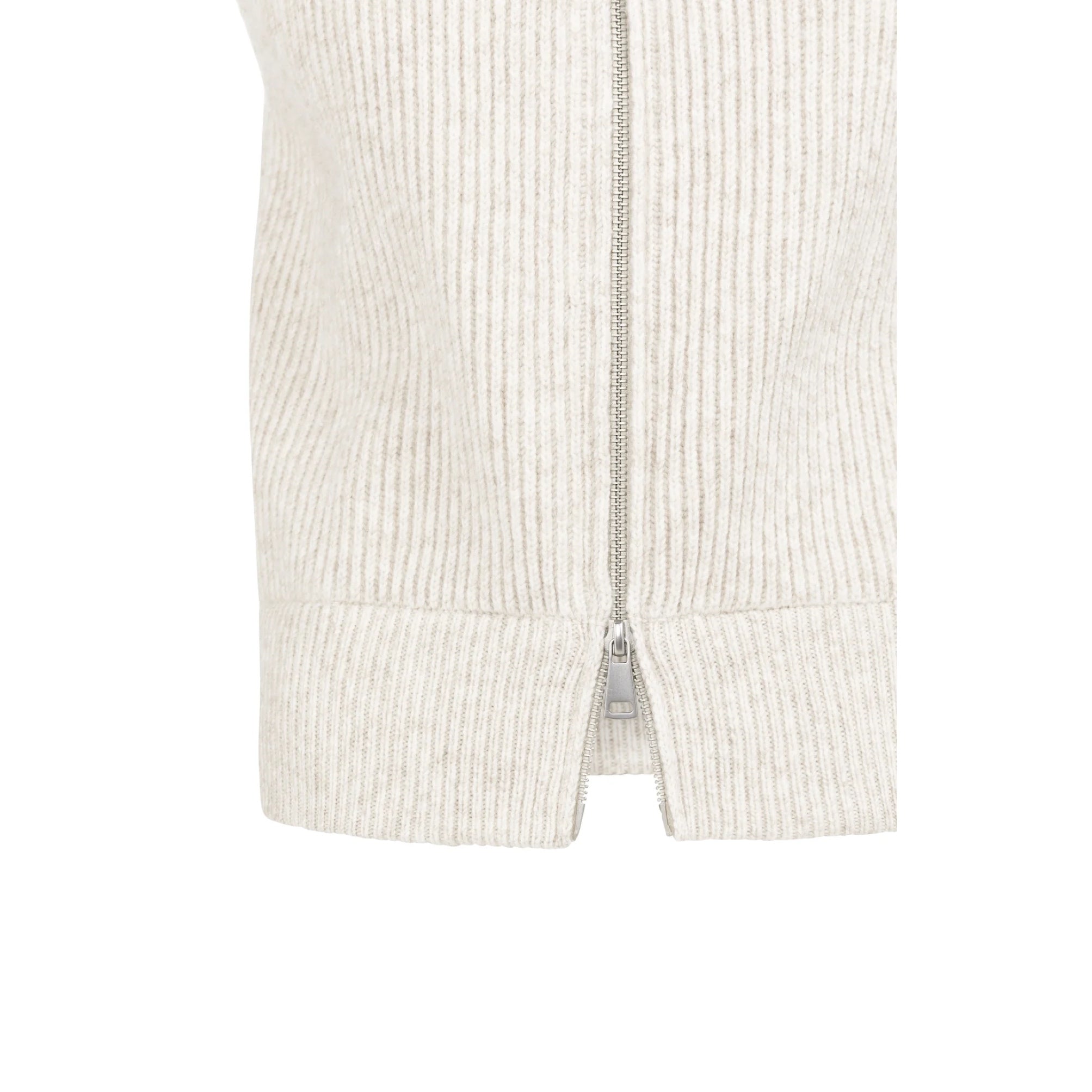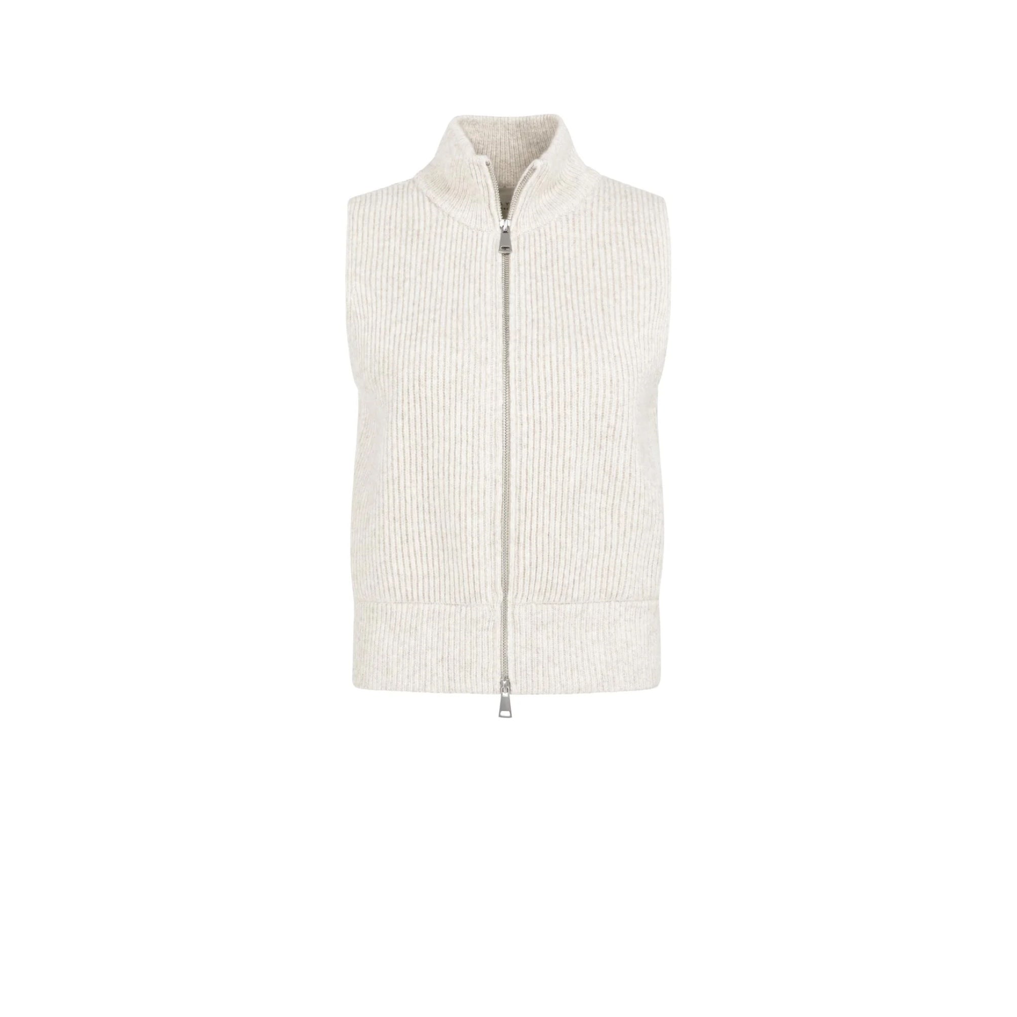 This sleeveless vest is crafted in a chunky rib knit and features a high neckline for extra warmth. Designed with a two-way zipper and a fitted waistband, it offers an oversized silhouette thats perfect for layering over blouses or sweaters. Made from a soft and comfortable fabric.