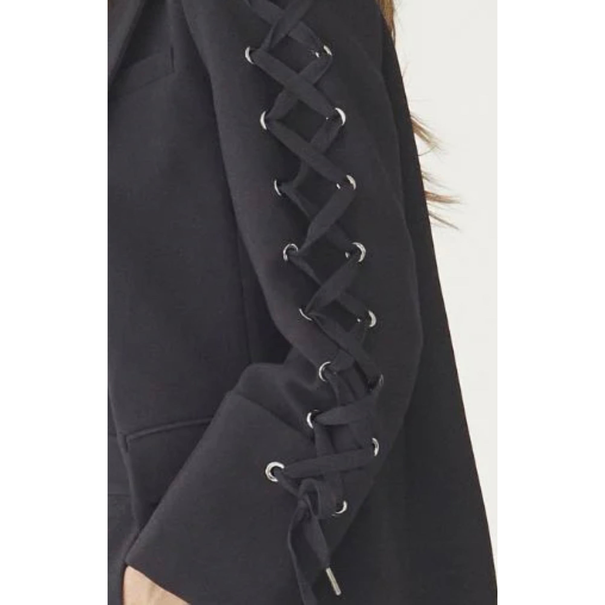 It features a unique eyelet detail down the sleeves which makes this piece stand out from the rest.