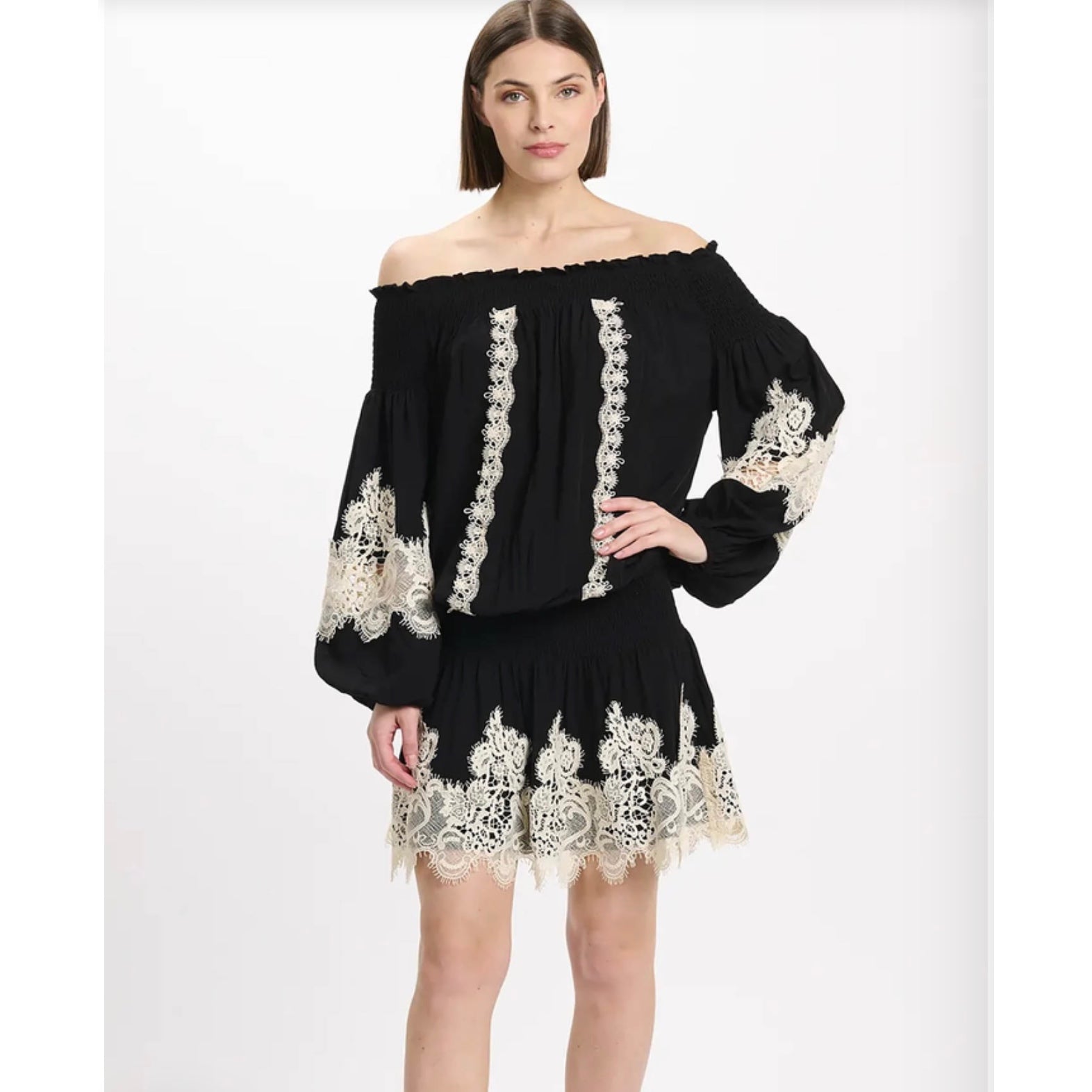 • Elasticated bardot collar: Sensual and sophisticated bare shoulders