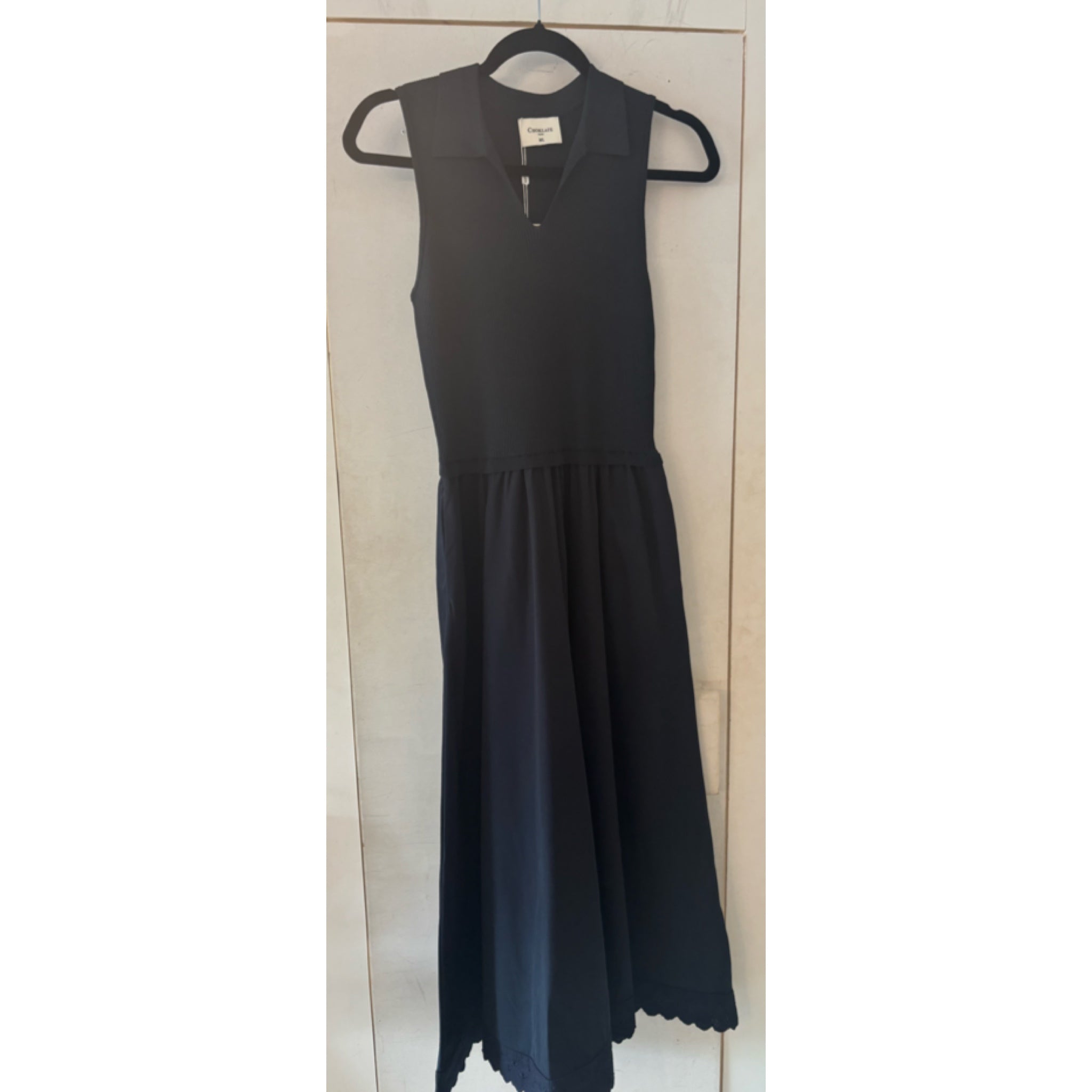 Effortlessly chic and practical, this sleeveless rib midi dress combines contemporary style with everyday functionality. The fitted ribbed fabric skims your silhouette while the midi length offers versatile elegance for any occasion. Functional pockets keep your essentials close, and the decorative trim detailing along the bottom edge adds a polished finishing touch. Perfect for layering or wearing solo, this on-trend piece transitions seamlessly from day to evening.