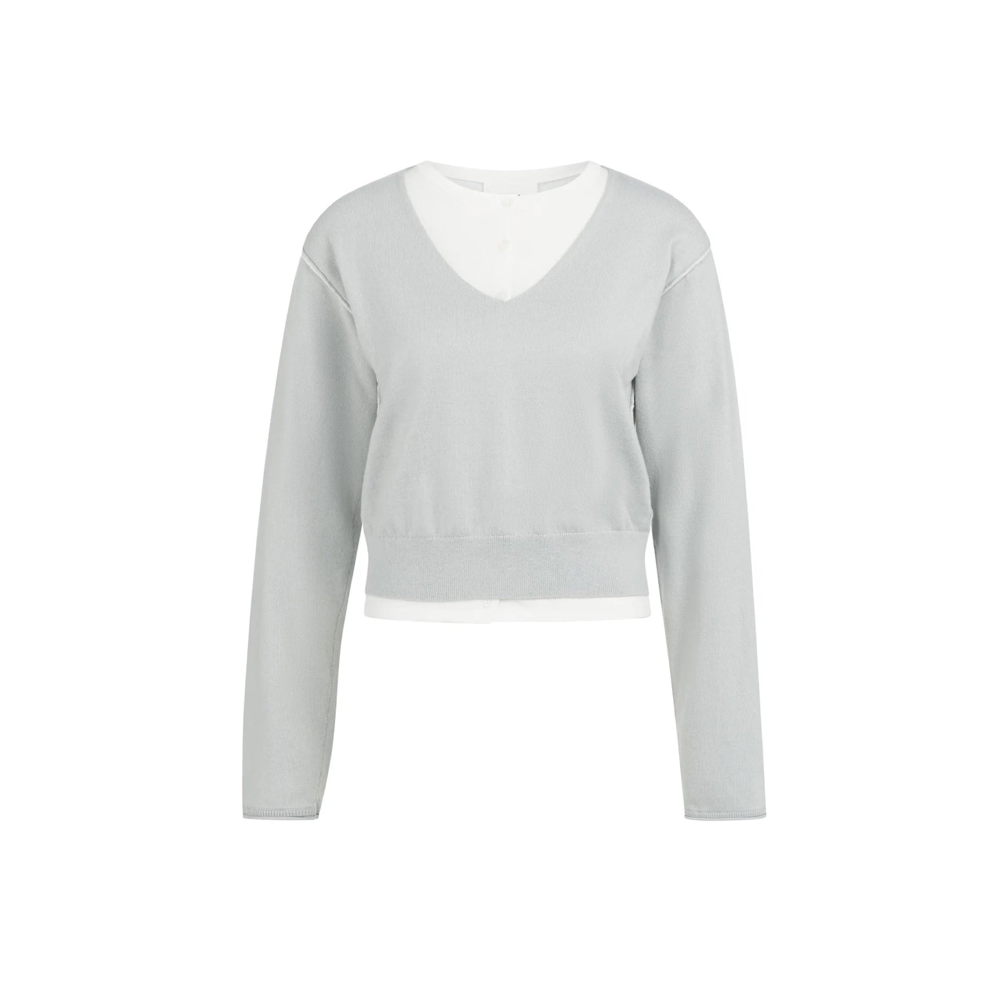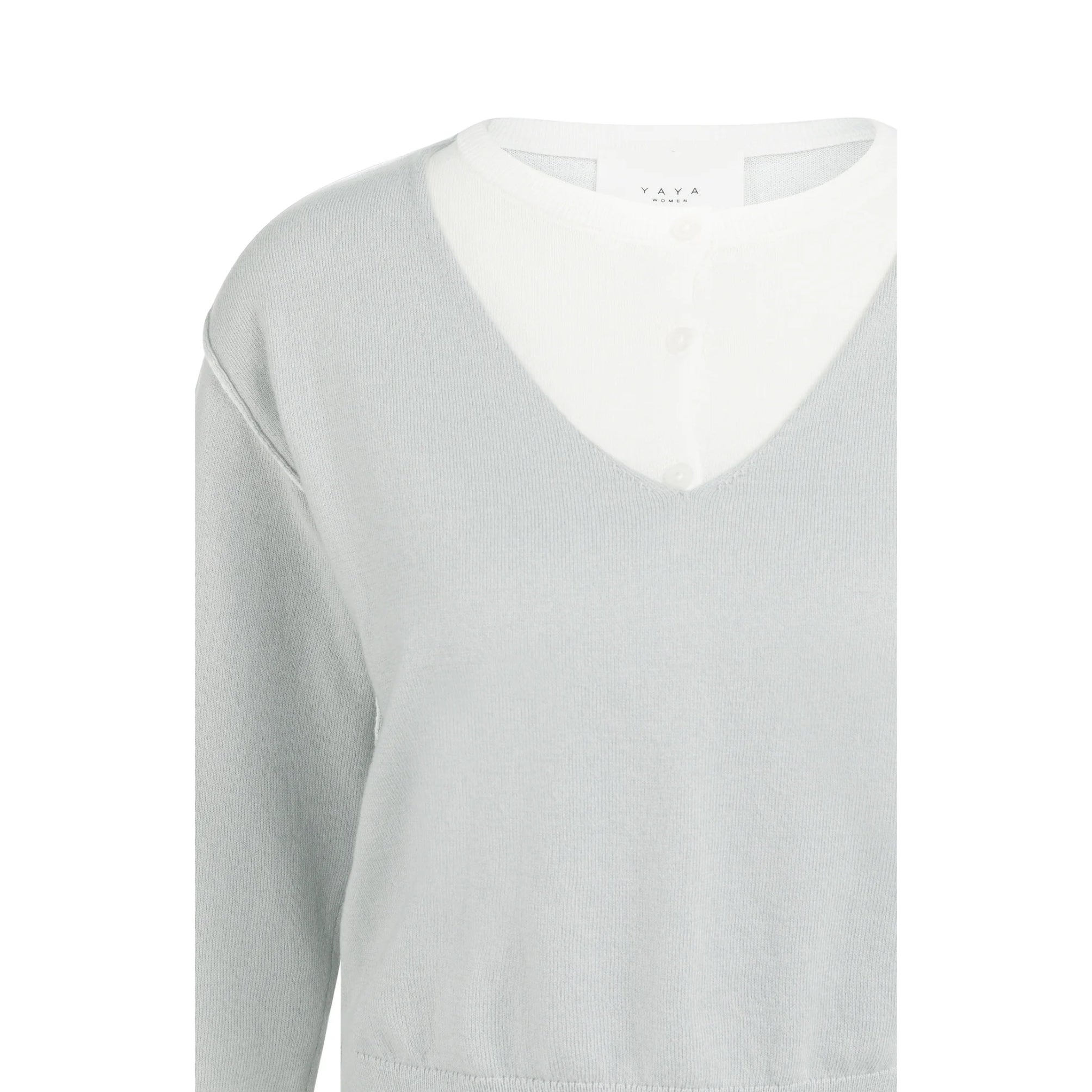This soft sweater features a V-neckline, long sleeves and built-in contrast details at the neckline and hem, creating an elegant layered look. Crafted from a fine knit with a regular fit. A refined and easy-to-style piece for everyday wear.