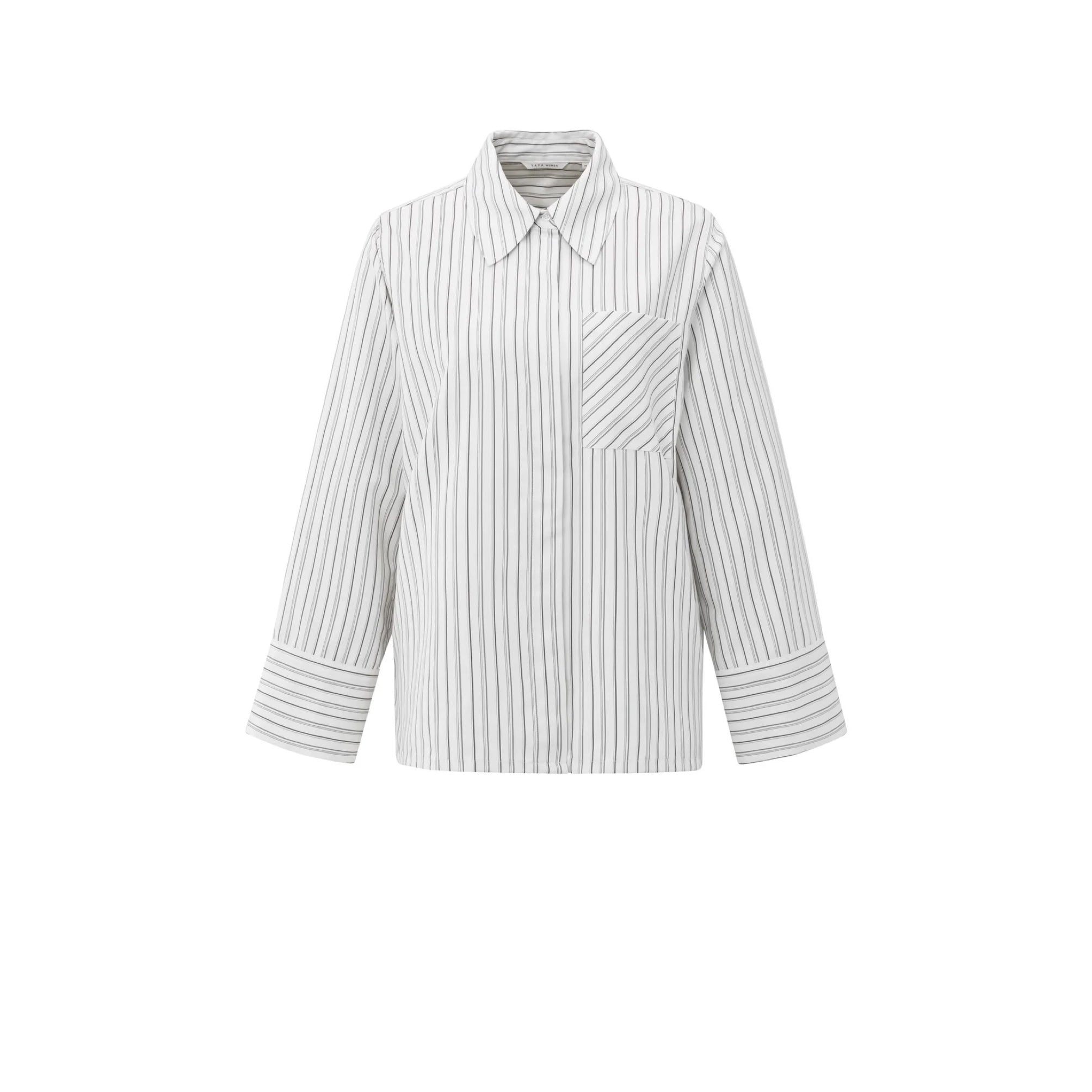 This refined blouse is crafted from a structured cotton blend and features a high V-neck collar for a modern, feminine look. Designed with a tailored fit and classic cuffs, it's a timeless piece that works for both casual and formal wear.
