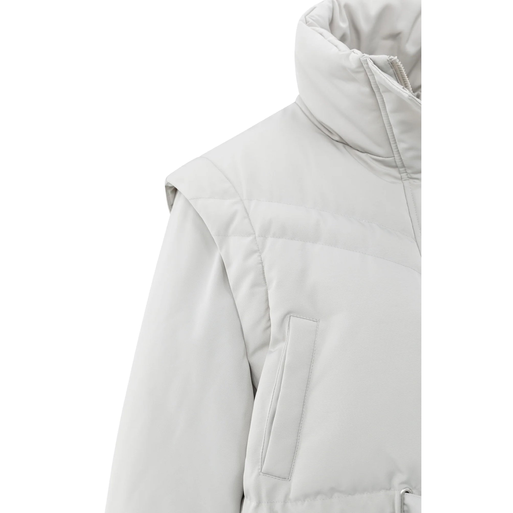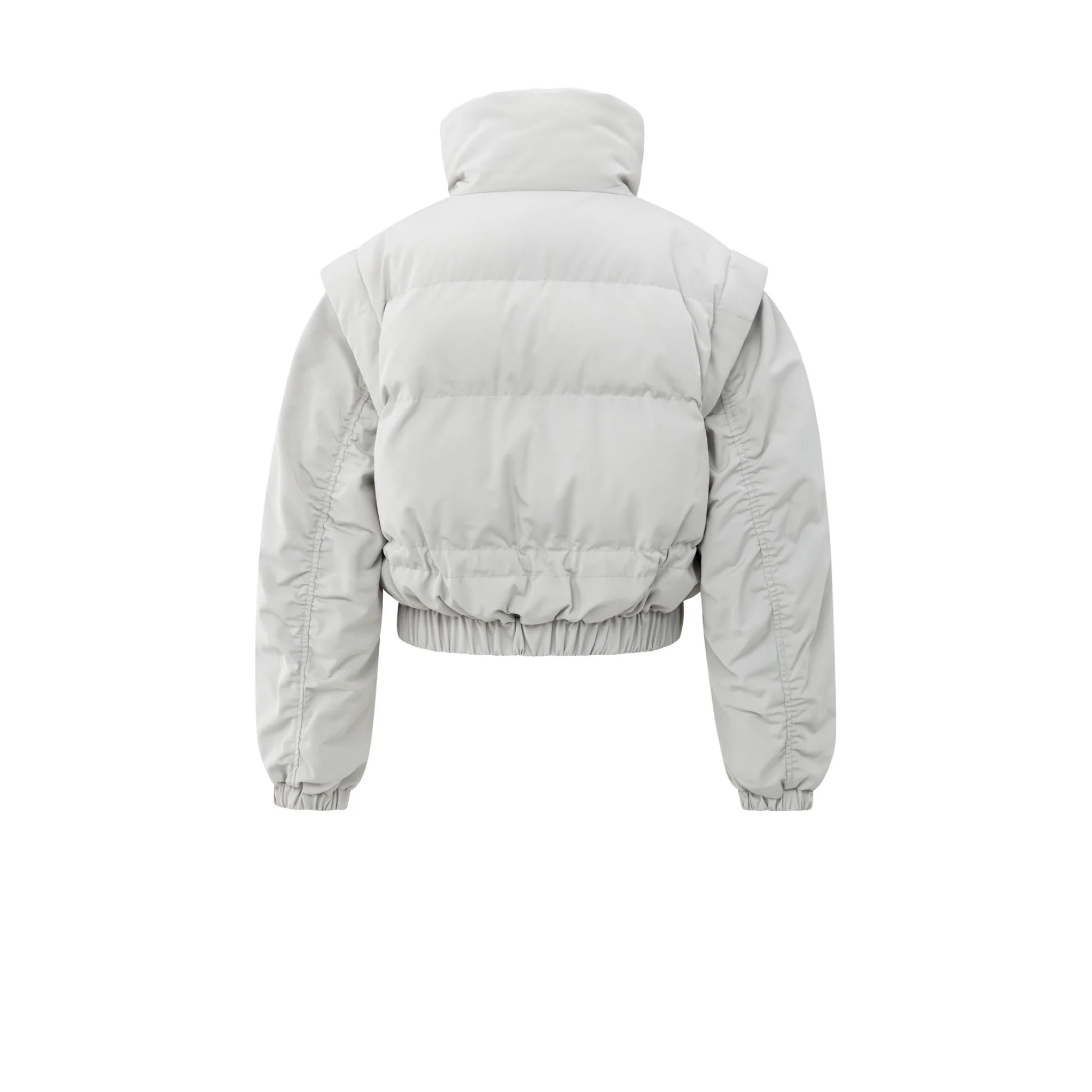 This stylish padded jacket is crafted from a smooth nylon fabric and features a cropped silhouette with an oversized fit. Designed with a high collar, zip closure, side pockets and elasticated cuffs and hem. The zip-off sleeves transform it into a modern gilet, making it a versatile piece for transitional weather.