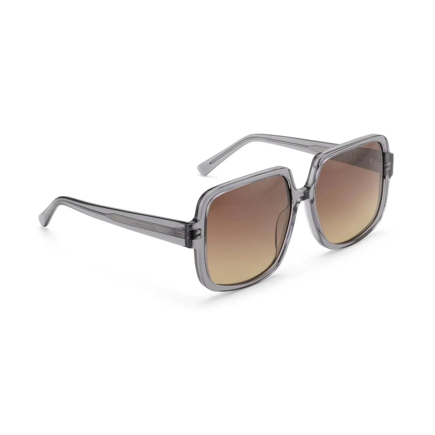 These fashionable sunglasses feature an oversized square frame with soft edges and a subtly notched bridge. The gently upward-sloping lenses add an elegant touch. Hand-polished acetate creates a deep shine, while the integrated steel spring insert ensures comfortable wear. The UV400 lenses provide optimal protection and enhance contrast. A stylish accessory to complete any outfit.