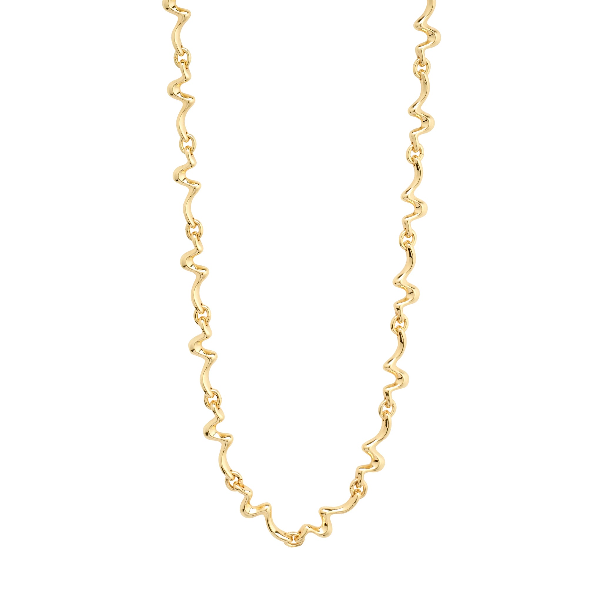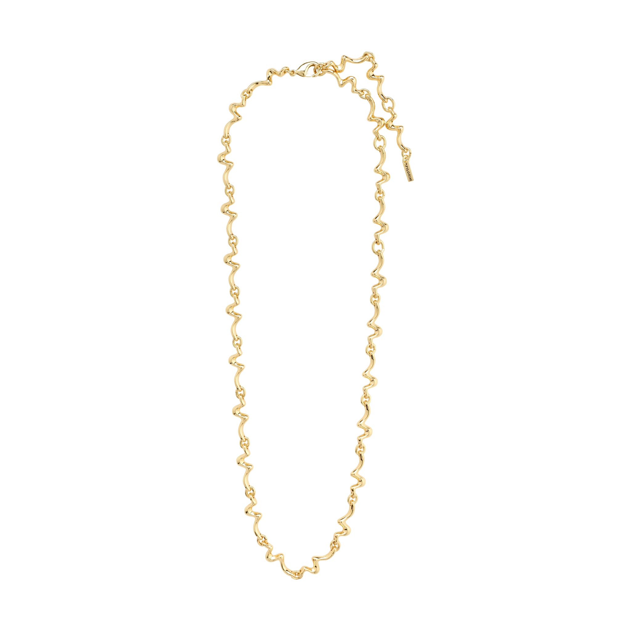Classiness never goes out of style, and the PENELOPE necklace from Pilgrim is pure elegance. The gold-plated chain comes with an eye-catching wavy design and a beautiful graphic silhouette that gives your outfit an upscale look. A timeless piece for those who value the stylish and aesthetic scandi style. Made with respect for the planet, the necklace contains 99% recycled material, making it a stylish and thoughtful choice. With a length of 38 cm plus a 9 cm extension chain, it offers a perfect fit and versatility for your styling.