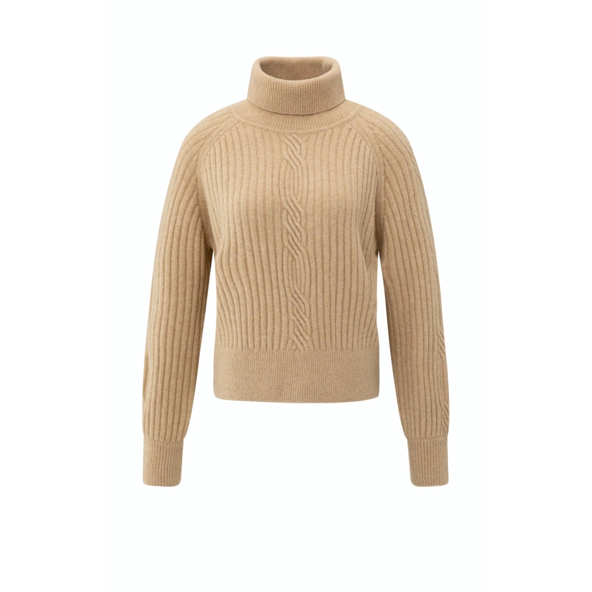 YAYA 01-000525-510 Ribbed Turtleneck Sweater with Cable and Long Sleeves