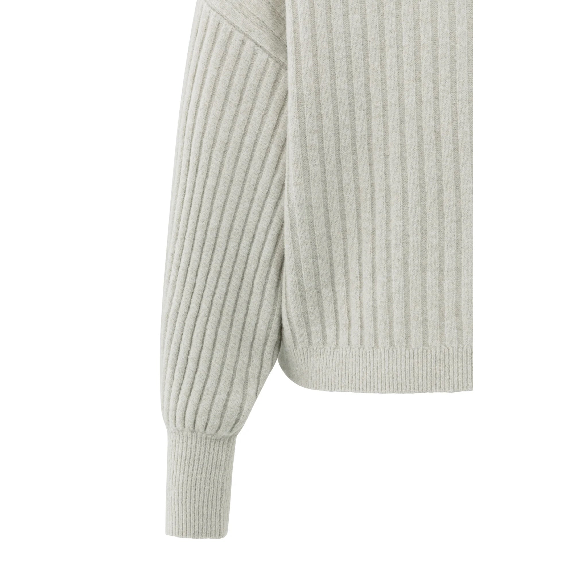 This comfortable sweater is made from a soft wool blend and features a chunky ribbed texture. Designed with a round neckline, long sleeves with dropped shoulders, and a straight fit. The wide cuffs and hem add a modern, cozy touch. Perfect for a casual yet stylish look.