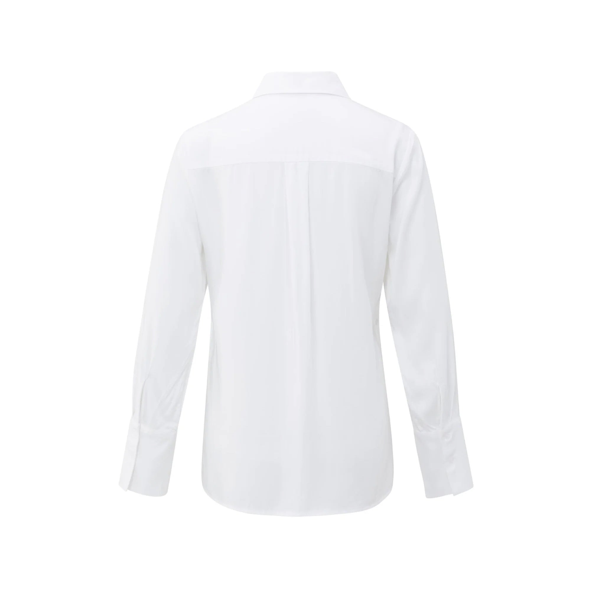 This elegant blouse is crafted from a fluid fabric and features a classic collar, long cuffed sleeves, and a concealed button placket. A subtle button detail at the waist adds a flattering accent to the silhouette. A timeless piece that pairs effortlessly with any outfit.